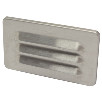 Het Sanivesk vlakkanaalmuurrooster van rvs is 110 mm lang en 55 mm hoog. Het muurrooster is dan ook geschikt voor het afdekken van een vlakkanaal van 110x55 mm. Een vlakkanaal gebruik je om bijvoorbeeld een afzuigkap aan te sluiten op een afvoerkanaal, maar ook andere ventilatiesystemen kunnen door middel van een vlakkanaal worden gekoppeld. Het muurrooster van rvs bevestig je op de muur waar het kanaal eindigt. Dankzij het roestvaststalen rooster blijft de luchtventilatie optimaal. Het muurrooster zorgt er tegelijkertijd voor dat er zo min mogelijk stof en vocht het kanaal binnendringt. Het roestvaste staal waarvan het rooster is gemaakt is stevig, corrosiebestendig en onderhoudsvrij. Daarnaast heeft het rvs-muurrooster voor vlakkanaal een luxe uitstraling voor een nette afwerking.