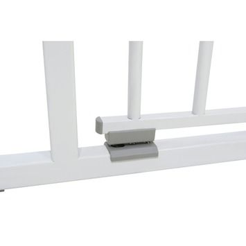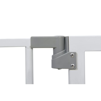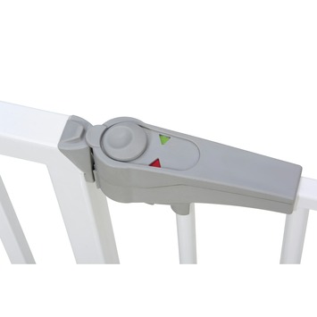 Het trap- en deurhekje SARA 73 81,5 cm is een metalen hekje dat als klemmend frame kan worden gemonteerd op muren of deurposten met daarbinnen een scharnierend hek. Voor extra veiligheid worden wallcups bijgeleverd die op de wand kunnen worden gemonteerd. Dit hek scharniert in 2 richtingen, maar desgewenst kan een van de richtingen worden geblokkeerd. Een indicator geeft dan aan naar welke richting het hek moet worden geopend.Het traphek heeft een dubbele beveiliging tegen openen, maar kan gemakkelijk met een handbeweging door een volwassene worden geopend en gesloten als extra 3e beveiliging kunnen desgewenst ook beide scharnierrichtingen worden geblokkeerd.Het hek SARA kan worden verlengd met maximaal 4 verlengstukken van 8,5 cm en dus tot een maximale breedte van 115,5 cm worden gebruikt. Dit traphekje voldoet aan de strenge eisen voor kindertraphekjes.Geschikt voor kinderen van 0-24 maanden.