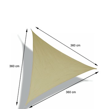 Het driehoekig zonnescherm in de kleur zand is niet alleen prachtig om te zien, maar ook nog eens praktisch om te hangen. Dankzij het Schaduwdoek Driehoek 360x360x360 cm kan je de zon slim weren en schaduw creëren waar en wanneer jij dat wenst. Het stevige zonnescherm is afgewerkt met 3 lussen, zodat jij het scherm makkelijk kan ophangen aan de muur, een paal, enzovoort. Heel hip deze zomer! Het schaduwdoek is 360x360x360 cm groot en is ook in een vierkante of grotere uitvoering verkrijgbaar.