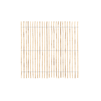 Het hek bestaat uit 31 gepunte kastanje latten die op drie punten met gevlochten verzinkt ijzerdraad aan elkaar zijn bevestigd. Het gebruik van geschild kastanjehout zorgt voor een natuurlijke uitstraling die uitstekend past in een landelijke of natuurlijke tuin. Elke lat heeft een uniek karakter dankzij de natuurlijke eigenschappen van kastanjehout.