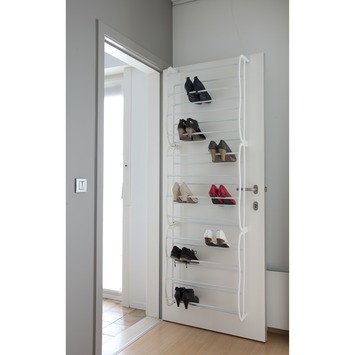 Dit schoenenrek hang je gemakkelijk aan je deur en is daardoor de ideale ruimte besparing