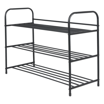 Het Henk-Jan schoenenrek is een simpel maar functioneel meubel bestaande uit drie lagen waar je al je schoenen netjes op kan zetten. Het schoenenrek heeft een neutrale zwarte kleur.