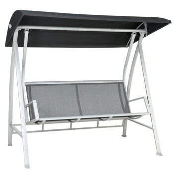 Heerlijk genieten in je tuin met de schommelbank Biarritz. De schommelbank heeft een frame van roestvrij aluminium waardoor je hem zonder problemen buiten kan laten staan. De bank van antraciet textileen biedt je een goed zitcomfort. De schommelbank Biarritz laat maximum drie personen toe. Het zwarte dak van polyester kan je verstellen en biedt je zo bescherming tegen de zon. Daarom is het lekker genieten met de schommelbank Biarritz.