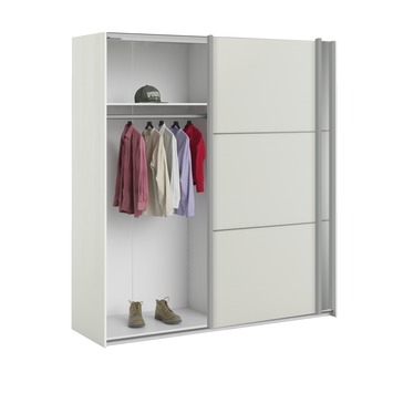 De garderobekast Janneke met de afmetingen (hxbxd) 202x182x64 cm is uitgevoerd in een witte kleur met houtnerf. De kast heeft schuifdeuren, waarvan 1 met spiegel, en wordt standaard geleverd met een roede voor een hanggedeelte en legplanken. Het interieur van de kast is uit te breiden met legplanken en ladenblok om de kast geheel naar eigen wens in te delen. Om de kast zachtjes en soepel dicht te kunnen doen, is er ook een softclose beschikbaar.