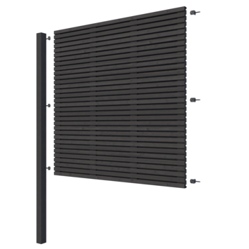 Het lattenschermpakket is gemaakt van geschaafd grenen hout. Om de levensduur te verlengen wordt deze houtsoort vacuümdruk geïmpregneerd met Tanalith E. Deze methode zorgt ervoor dat de levensduur verlengd wordt tot 10-15 jaar en dat het hout resistent wordt tegen (oppervlakte) schimmels. Na het impregneren is het hout zwart gespoten
