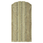 Tuinscherm Jumbo is gemaakt van 15 geschaafde grenen planken. De planken zijn bevestigd met behulp van geschoten schroeven. Het grenenhout waar de schutting uit bestaat is geïmpregneerd en daardoor beter bestand tegen weersomstandigheden. Dit artikel is een toog variant, wat wil zeggen dat deze aan de bovenkant rond is afgewerkt. Schutting Jumbo is 1,80 meter hoog en 1 meter 80 breed. De afzonderlijke planken zijn 13,5 centimeter breed en 1,3 centimeter dik. De schutting Jumbo heeft een gemiddelde privacy, wat te maken heeft met het aantal planken, de plankmaat en de mate van overlap. Deze schutting heeft een levensduur van ongeveer 10 jaar en kan na 5 jaar behandeld worden met een tuinbeits als bescherming voor het hout. De natuurlijke eigenschap van hout zorgt verder voor demping van het geluid.