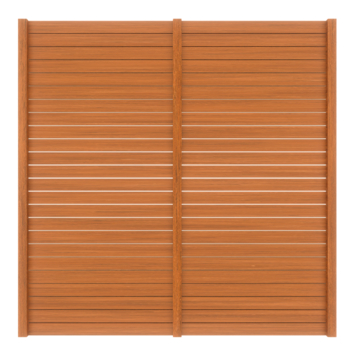 De schutting is opgebouwd uit 24 planken van 1,5 x 7 cm, wat zorgt voor een stevig en robuust ontwerp. De planken zijn met RVS schroeven bevestigd aan 4 verticale planken aan de achterzijde, wat zorgt voor extra stabiliteit en een lange levensduur. Het mooie Keruing hout heeft een warme uitstraling, wat het een prachtig decoratief element maakt voor je tuin.