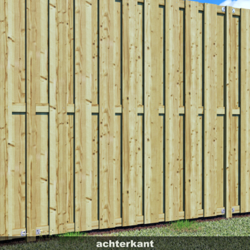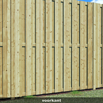 De schutting Royal is een rechte houten schutting. Het tuinscherm is gemaakt van grenenhout, een zeer geschikte houtsoort voor het gebruik in de tuin. Door het impregneren van het hout is deze schutting beter beschermd tegen weersomstandigheden. De schutting is 200 cm hoog in plaats van de reguliere 180 cm hoog. De schutting is gemaakt van 17 geschaafde planken van 15 mm dik en 14 cm breed, waardoor doorkijken haast wordt voorkomen. Deze schutting geeft dan ook veel privacy. De planken zijn bevestigd met RVS schroeven. Deze gaan niet roesten en hierdoor kan de schutting jarenlang meegaan. De schutting royal heeft een verwachte levensduur van ongeveer 10 jaar. Na 5 jaar hoeft de schutting pas te worden behandeld met een tuinbeits.