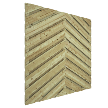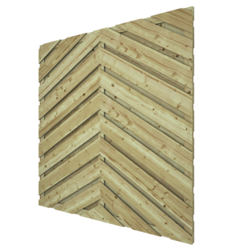 Het tuinscherm Szeged recht grenen geschaafd geïmpregneerd groen is 180 cm hoog, 180 cm breed en 4,5 cm diep. Het scherm bestaat uit een houten frame waarop planken in visgraatmotief met RVS schroeven zijn bevestigd. Het scherm is tweezijdig, heeft enige doorkijk en kan met (6x) L-beslag met schroef en RVS schroeven aan 2 steunpalen bevestigd worden. Het plankenscherm is gemaakt de houtsoort grenen.