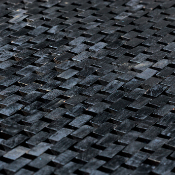 Niet Woodstock maar Woodblock. Net als in de jaren zestig speelt deze badmat met het gebruik van patronen. Een vintage look door het gebruik van teak maar met een luxe zwarte afwerking.