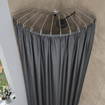 Sealskin Douchegordijnstang Umbrella Aluminium is een bijzonder ophangsysteem van Sealskin voor een douchegordijn waarbij geen gebruik gemaakt wordt van een douchestang maar van een speciale stalen constructie met 12 chroomen armen die boven de douche of het douchepaneel hangt. De houder van de armen is gemaakt van PP. De Umbrella heeft maar één bevestigingspunt nodig en is geschikt voor een douchegordijn met een breedte van 180 cm en 12 ophang oogjes.