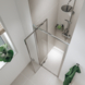 Creëer ruimte in je badkamer met deze unieke douchedeur! Plaats hem in een nis van 76-80 cm of combineer hem met een zijwand. Het speciale draai-/schuifmechanisme bespaart veel ruimte, met een opening die wat ruimte laat tussen de deur en de muur voor handdoeken of accessoires. Ideaal voor kleinere badkamers! Het raamwerk rondom de deur houdt douchewater binnen. Gemaakt van 6 mm dik veiligheidsglas met een tijdloze zilver hoogglans afwerking.