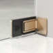 De geborsteld gouden afwerking van de scharnieren en handgreep geeft een moderne en stijlvolle uitstraling aan elke minimalistische badkamer