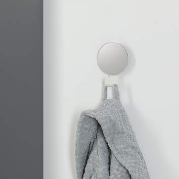 De Sealskin Haak met Spiegel Brix Wit is een haakje met een afmeting van 6x4.5x13 cm die je in de badkamer of WC kunt ophangen. Je schroeft het haakje eenvoudig aan de muur vast met de bijgeleverde schroeven. De haak heeft een klein spiegeltje aan zich vast zitten, dus bij het pakken van je handdoek of kleding kun je snel even een blik werpen in de spiegel. De kleur van de haak is wit maar deze is ook in zwart verkrijgbaar. In de Brix-serie kun je ook andere bijpassende producten kopen bij Gamma.
