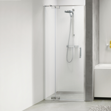 Custom is uitgevoerd met 6 mm helder veiligheidsglas en zilverhoogglans afwerking. Standaard geleverd met chromen en witte accenten. Custom douches zijn eenvoudig te installeren en zeer nauwkeurig af te stellen, ook ná installatie. De Swingdeur heeft een vast deel, zo draai je om bijvoorbeeld een gemonteerde radiator heen.