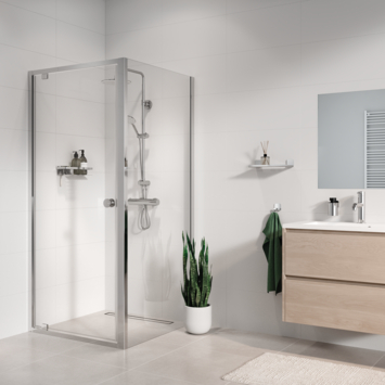 Ontwerp jouw ideale douchecabine met de flexibele Seev-serie! Combineer deze zijwand met elke deur uit de serie om een vierkante of rechthoekige douchecabine te creëren, waarbij je aan de voorzijde instapt. Voor een hoekinstap of kwartronde douchecabine kies je de bijpassende Seev modellen. De zijwand bestaat uit een paneel van 6 mm dik veiligheidsglas dat in het muurprofiel wordt geplaatst en vervolgens wordt vastgeklemd met de meegeleverde klempees. Geen gedoe met boren, en je kunt het paneel altijd afstellen. Monteren aan de deur is eenvoudig met de meegeleverde schroefjes. Geschikt voor douchecabines op een douchebak van 80 cm, met een werkelijke maat van 77-79 cm.