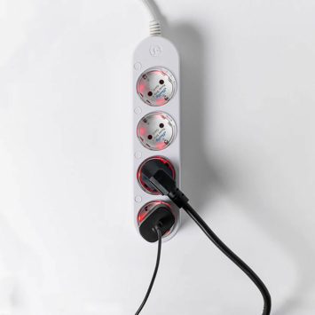 De vier stopcontacten kunnen elk tot 12 A schakelen met een totaal van 16 A. Beveiliging tegen oververhitting, spanningspieken en overbelasting is geïntegreerd zodat je apparatuur veilig blijft. De meerkleurige led-ringen tonen direct wat de status is van elk kanaal. Daarnaast blijft het geheel overzichtelijk door het platte ontwerp dat makkelijk te plaatsen is naast bureaus, tv-meubels of werktafels.