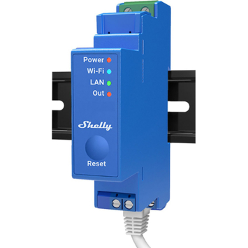 De Shelly Pro 1 slimme schakelaar WiFi Bluetooth DIN-rail is een 1-kanaals module die je gebruikt om een vaste groep in huis slim te maken. Hij wordt in de meterkast op een DIN-rail geplaatst en werkt via WiFi, LAN en Bluetooth. Daardoor kun je verlichting, ventilatie of andere apparaten op afstand bedienen via je smartphone of Smart Home systeem zonder dat je iets aan je bekabeling hoeft te veranderen.
