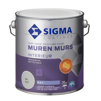 Sigma muurverf reinigbaar mat 2,5 L RAL 7047
