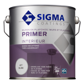 De Sigma Primer interieur voor muren en plafonds (wit, 2,5 liter) is een matte primer die dient als perfecte basis voor je binnenschilderwerk. Deze primer vermindert de absoptie(verschillen) van de ondergrond en creëert daarmee een stabieler oppervlakte voor de eindafwerking en dus een professioneel eindresultaat. De primer is zeer goed dekkend, waardoor veelal met één afwerklaag kan worden volstaan. Sigma Primer Interieur laat zich prima verwerken met een ronde kwast of viltroller.