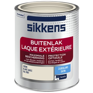 Sikkens buitenlak RAL 9001 zijdeglans 750 ml is een zijdeglans aflak op basis van alkydhars die u voor buiten kunt gebruiken. U kunt het met de kwast of met de roller aanbrengen op onder andere deuren en kozijnen. Sikkens Buitenlak Zijdeglans is geschikt voor het aflakken van hout, staal, non-ferro metalen en diverse kunststoffen mits u ze voorziet van de juiste grondverf. Voor een perfect resultaat op uw houtwerk gebruikt u eerst Sikkens Grondlak.