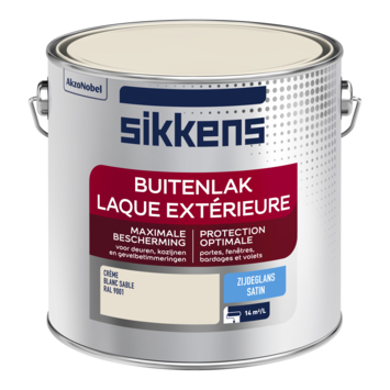 Sikkens buitenlak RAL 9001 zijdeglans 2,5 liter ml is een zijdeglans aflak op basis van alkydhars die u voor buiten kunt gebruiken. U kunt het met de kwast of met de roller aanbrengen op onder andere deuren en kozijnen. Sikkens Buitenlak Zijdeglans is geschikt voor het aflakken van hout, staal, non-ferro metalen en diverse kunststoffen mits u ze voorziet van de juiste grondverf.Voor een perfect resultaat op uw houtwerk gebruikt u eerst Sikkens Grondlak.