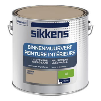 Sikkens binnenmuurverf zachtbruin mat is geschikt voor het afwerken van muren en plafonds voor elk type ruimte. Het product is bestand tegen vlekken en uitstekend reinigbaar met behoud van kleur en glans. Hierdoor blijven muren langer mooi en is overschilderen minder vaak nodig. Sikkens binnenmuurverf mat heeft een goede dekking, waardoor een optimaal rendement wordt behaald van de verf. Voor een perfect professioneel eindresultaat gebruik je dit artikel in combinatie met Sikkens voorstrijk.