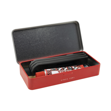 inhoud van de Simson Reparatiedoos Normaal is goed voor 12 plakbeurten en