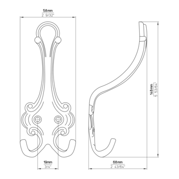 Deze ophanghaak bestaat uit twee delen waar een jas, tas of ochtendjas aangehangen kan worden. Met meerdere haken kan je zelf jouw kapstok samenstellen. De haak is bronskleurig afgewerkt.