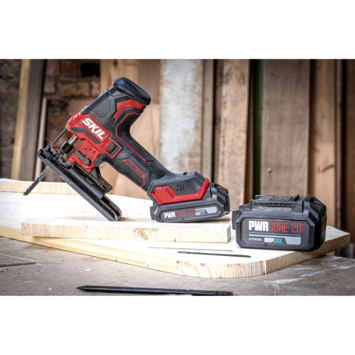 De „20V Max” 3440 accudecoupeerzaag is onderdeel van het compacte borstelloze assortiment van SKIL. Deze gereedschappen zijn extreem compact en bieden een combinatie van hoge prestaties en een ongeëvenaard niveau van gemak. Net als alle andere SKIL „20V Max” accugereedschappen wordt dit model aangedreven door de toonaangevende geavanceerde „PWRCORE 20™” accu- en opladertechnologie. Onze SKIL 3440 borstelloze accudecoupeerzaag is bij uitstek geschikt voor nauwkeurig zagen van gebogen en rechte zaagsneden. Het zeer compacte en lichte ontwerp met T-handgreep zorgt voor optimale controle en geleiding, wat zelfs extra handig is bij werkzaamheden waarbij de decoupeerzaag ondersteboven wordt gehouden. De digitale borstelloze motor levert meer vermogen, meer efficiëntie en een 10x langere levensduur dan een vergelijkbare motor met koolborstels. Goed zicht op uw werk wordt gewaarborgd dankzij het unieke „360° LED”-licht dat de zaaglijn zonder schaduw verlicht. Met de vooringestelde variabele-snelheidsregeling kunt u de decoupeerzaag gebruiken voor de beste resultaten in diverse materialen. Deze decoupeerzaag heeft zelfs een speciale „Auto Speed”-instelling die een gecontroleerde start waarborgt. Het gereedschap loopt automatisch aan tot maximale snelheid en alleen nadat het daadwerkelijke zagen begonnen is. Met de zaagbladuitwerpfunctie hoeven hete zaagbladen bij het wisselen niet te worden aangeraakt, en de elektrische rem waarborgt meer comfort en maakt sneller werken mogelijk. U kunt de aluminium voetplaat gemakkelijk afstellen om verstekzaagsneden te maken. De SKIL 3440 CA wordt geleverd met één zaagblad voor hout, één zaagblad voor metaal, één zaagblad voor het zagen van bochten en een stofzuigeradapter. De accu en oplader zijn niet inbegrepen.
