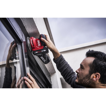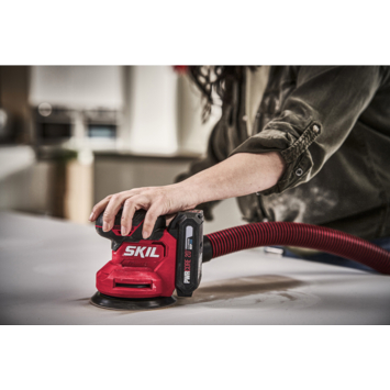 De „20V Max” SKIL 3746 is een excentrische schuurmachine met groot prestatievermogen voor comfortabel schuren met één hand. Deze maakt deel uit van het SKIL borstelloze programma en biedt ongeëvenaard waar voor zijn geld. Onze borstelloze motor is sneller, krachtiger en heeft een 10 keer langere levensduur dan een gebruikelijke motor met koolborstels. Net als alle andere SKIL „20V Max” accugereedschappen wordt dit model aangedreven door de toonaangevende „PWRCORE 20™” accu- en opladertechnologie. De borstelloze excentrische accu-schuurmachine SKIL 3746 is uw ideale partner bij het schuren van zowel vlakke als gebogen oppervlakken. Deze machine biedt optimale controle bij bediening met één hand dankzij het ergonomische ontwerp en het balanceersysteem „VRS” dat met contragewichten werkt en trillingen vermindert. Door de efficiënte excentrische schuurbewegingen is de machine bij uitstek geschikt voor zowel fijn schuurwerk als afbramen. Om schoner te werken wordt de SKIL 3746 geleverd met een stofzak en een stofzuigeradapter. Een ander voordeel van dit model is de geïntegreerde remfunctie die beschadiging van het werkstuk voorkomt die zou kunnen ontstaan, wanneer het gereedschap op het werkstuk wordt geplaatst of hiervan wordt verwijderd. En de hoogwaardige stofdichte kogellagers zorgen ervoor dat er geen stof bij kritische inwendige onderdelen komt, zodat de levensduur van het gereedschap wordt verlengd. SKIL 3746 CA wordt geleverd met drie vellen schuurpapier en een stofzuigeradapter. De accu en oplader zijn niet inbegrepen.