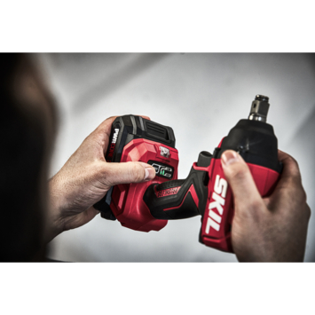 De „20V Max” Skil 3241 is een draaislagmoeraanzetter met groot prestatievermogen, ideaal voor het vast- en losdraaien van bouten en moeren. Deze maakt deel uit van het Skil borstelloze programma en biedt ongeëvenaard waar voor zijn geld. Onze borstelloze motor is sneller, krachtiger en heeft een 10 keer langere levensduur dan een gebruikelijke motor met koolborstels. Net als alle andere Skil „20V Max” accugereedschappen wordt dit model aangedreven door de toonaangevende „PWRCORE 20™” accu- en opladertechnologie. De Skil 3241 biedt een hoog aanhaalkoppel van 300 Nm en een losbreekkoppel van 500 Nm om je klus met gemak te klaren. Deze accudraaislagmoeraanzetter heeft een ergonomisch ontwerp met een robuust metalen tandwielhuis wat de levensduur verlengt. De twee snelheids-/koppelinstellingen zorgen voor superieure controle over snelheid en vermogen. Het wisselen van accessoires is eenvoudig dankzij de 1/2" vierkantaandrijving met frictiering. Kortom, dit veelzijdige gereedschap biedt echt alles wat je nodig hebt: betrouwbare Lithium-Ion accutechnologie, variabele snelheid voor volledige controle en een ledlicht voor goede zichtbaarheid van uw werk. De Skil 3241 CA wordt geleverd zonder accu en oplader.