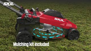 De SKIL 0140 is een borstelloze accugrasmaaier met de prestaties van „40V Max” door twee „20V Max” accu's. Hij is ideaal voor het maaien van grote gazons dankzij de grote maaibreedte van 43 cm en borstelloze motor die sneller, krachtiger en een langere levensduur heeft dan een vergelijkbare motor met borstels. Deze maaier is uitgerust met de SKIL „Grass Guide” om efficiënt dichtbij muren en randen te maaien. Voor een optimale maai-ervaring kunt u de maaihoogte eenvoudig aanpassen aan de condities van uw gazon. De SKIL 0140 heeft zes hoogte-instellingen tussen 25 en 75 mm die met de centrale handgreep kunnen worden aangepast. Drie werkhoogte-instellingen zorgen voor een flexibele werkhoogte voor maaien zonder vermoeidheidsverschijnselen. Dankzij het exclusieve „Easy Storage”-ontwerp van SKIL neemt dit gereedschap na gebruik bijna geen ruimte in beslag. De SKIL 0140 BA wordt geleverd met twee „20V Max” (18 V) 4,0 Ah „Keep Cool™”-accu's, een snellader, een grasopvangbak, mulchset, sleutel en zeskantsleutel.
