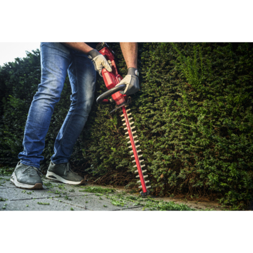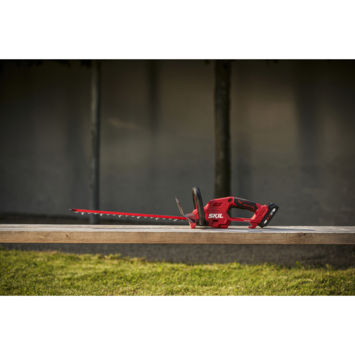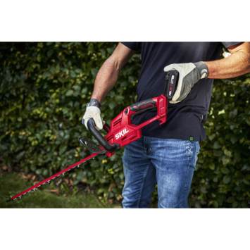 De „20V Max” (18 V) Skil 0438 is een accuheggenschaar voor het snoeien van heggen en struiken. Deze maakt deel uit van het Skil borstelloze programma en biedt ongeëvenaard waar voor zijn geld. De borstelloze motor is sneller, krachtiger en gaat 10 keer langer mee dan een gebruikelijke motor met koolborstels. Met het lasergesneden, diamantgeslepen mes van 45 cm biedt deze heggenschaar een uitstekende snoeikwaliteit. Het snoeien van dikke takken is geen probleem met de mesafstand van 20 mm en wordt gewaarborgd door de dubbelwerkende messen van gehard staal. Je kan zelfs langs muren of dichtbij de grond snoeien, dankzij de mespuntbeschermer. Dit voorkomt beschadiging van de mespunt, wanneer de accuheggenschaar een hard oppervlak raakt. Dankzij het exclusieve EASY STORAGE-ontwerp van Skil neemt dit gereedschap na gebruik bijna geen ruimte in beslag. Skil 0438 CA wordt geleverd met een mesbeschermer en een EASY STORAGE-haak. De accu en oplader zijn niet inbegrepen.