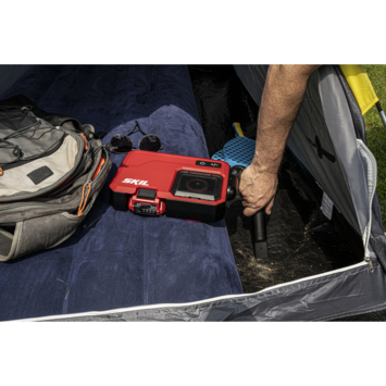 De 20V Max, Skil 3167 accustofzuiger levert een zuigkracht van max. 30 Airwatt om de meeste dagelijkse verontreinigingen in en om het huis, de auto of de camping op te ruimen. Door het compacte ontwerp en de verlengbare, flexibele slang (max. 100 cm) kan deze bijna overal eenvoudig worden gebruikt. De stofzuiger wordt geleverd met een spleetzuigmond voor moeilijk bereikbare, krappe plekken en een borstelzuigmond om los vuil en stof gemakkelijker op te zuigen. Behalve dat het een fantastische stofzuiger in een compacte behuizing is, kan je de luchtstroom van 500 /min en ventilatiedruk van 15 kPA ervan ook gebruiken om luchtbedden, strandballen en meer op te pompen, zodat de Skil 3167 je ideale metgezel op reis is. Skil 3167 is uitgerust met een multilaags filtersysteem. Dit geavanceerde filtratiesysteem is ontworpen om vuil, stof en andere verontreinigende stoffen vast te houden, waardoor een schonere, gezondere omgeving wordt gewaarborgd. De filters kunnen eenvoudig worden verwijderd en uitgewassen zodat je op elk moment op hun efficiëntie kunt vertrouwen. Het stofreservoir heeft een inhoud van 200 ml en kan op een hygiënische manier worden geleegd met een eenvoudig druk op de knop, zodat het weggooien een fluitje van een cent is. Met twee snelheidsinstellingen kan je kiezen voor de langere looptijd tot max. 35 minuten constant, efficiënt reinigen, wat perfect is voor het aanpakken van grotere oppervlakken. Of schakel naar een modus met een hoog vermogen met een zuigkracht van een indrukwekkende 31 Airwatt om probleemloos zelfs de hardnekkigste vervuillende stoffen in een mum van tijd te verwijderen. De Skil 3167 stofzuiger maakt deel uit van het PWRCORE 20™ accuplatform en werkt zodoende met bijna alle Skil 20V MAX accu's. Er passen ook PWRCORE 12 (12 V) accu's in. De Skil 3167 wordt geleverd zonder een accu, zodat u uw stroombron overeenkomstig uw bestaande Skil-verzameling kunt aanpassen. Ontworpen met een modern, slank profiel komt deze veelzijdige stofzuiger perfect op zelfs de krapste plekjes. Of deze nu in je keukenkastje is genesteld, weggestopt is in je auto of discreet in een hoekje thuis is opgeborgen, de Skil 3167 garandeert efficiënt opbergen zonder dat er concessies aan de toegankelijkheid worden gedaan. De Skil 3167 is zelfs uitgerust met bevestigingsclips, zodat deze heel handig aan de zak op de achterkant van je auto kan worden bevestigd of aan een muur kan worden gehangen. Deze functie zorgt ervoor dat je stofzuiger niet alleen aan de kant is, maar ook altijd binnen handbereik, klaar om in een mum van tijd allerlei vuil aan te pakken.