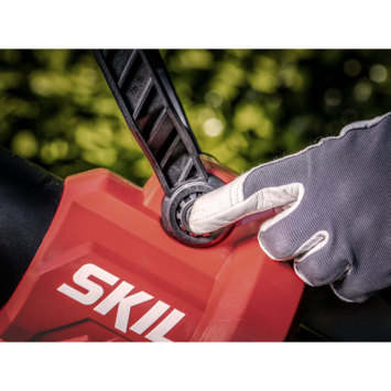Dankzij de geïntegreerde versnipperfunctie wordt tuinafval in een verhouding van 11:1 verkleind, wat zorgt voor een compacte en praktische afvoer. Met de ruime opvangzak van 45 liter kunt u langer werken zonder de zak vaak te hoeven legen. Voor eenvoudig manoeuvreren in uw tuin is deze bladblazer en -zuiger voorzien van een handig ondersteunend wiel. Het exclusieve "EASY STORAGE"-ontwerp van SKIL zorgt ervoor dat dit gereedschap na gebruik weinig ruimte in beslag neemt. De SKIL 0350 CA wordt geleverd met een schouderriem, opvangzak voor bladeren en een EASY STORAGE-haak. Accu en oplader zijn niet inbegrepen en apart verkrijgbaar.