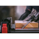 De tafelzaag is uitgerust met een precisiegeleider die via een tandheugel- en rondselsysteem eenvoudig en exact kan worden ingesteld. De 2-in-1 afkortgeleider is multifunctioneel inzetbaar en kan worden gebruikt als tafelverlenging, waardoor ook grotere werkstukken tot 62 cm stabiel kunnen worden verwerkt. De fijnafstelling van de bladuitlijning zonder sleutel zorgt ervoor dat het zaagblad altijd perfect parallel loopt aan de geleider.