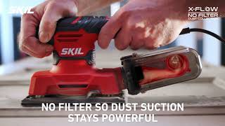 De SKIL 7362 vlakschuurmachine heeft een zeer krachtige 280W motor en biedt effectieve schuurbewegingen voor moeiteloos schuren van bijvoorbeeld deuren, tafels, omheiningen en schuurtjes. Met de variabele snelheidsfunctie van de schuurmachine kan de snelheid aan de klus worden aangepast. Dit gereedschap is voorzien van het unieke ‘X-Flow’-stofopvangsysteem dat stof van lucht scheidt zonder het gebruik van een filter. Het grootste voordeel hiervan is dat er geen filter verstopt kan raken, waardoor een constante krachtige stofafzuiging voor een langere en schonere werking gegarandeerd is. Maar als u liever een stofzuiger gebruikt, kunt u ook de stofzuigeradapter aansluiten. De hoogwaardige stofdichte kogellagers zorgen ervoor dat er geen stof bij kritische inwendige onderdelen komt, zodat de levensduur van het gereedschap wordt verlengd. Voor uw gemak is dit gereedschap uitgevoerd met een balanceersysteem door middel van contragewichten dat ‘VRS’ wordt genoemd. Het verlaagt de trillingsniveaus waardoor de schuurklus minder vermoeiend is. Deze schuurmachine heeft een dubbel bevestigingssysteem met klemmen en klithechting, zodat u zowel gewone vellen schuurpapier als schuurpapier met klithechting kunt gebruiken. De SKIL 7362 AA wordt geleverd met drie vellen schuurpapier, een ‘X-Flow’-stofcontainer, een stofzuigeradapter en een perforator.