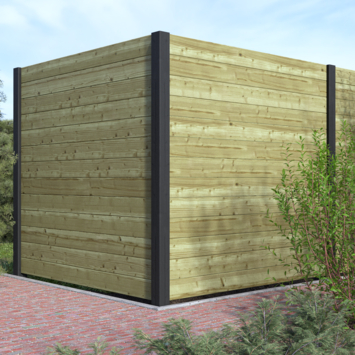 Sleufpaal hoekpaal grenen gespoten zwart ca. 8,8 x 8,8 cm, lengte ca. 230 cm