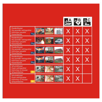 Om er zeker van te zijn dat je de juiste poederblusser koopt voor jouw situatie moet je weten voor wat voor branden de blusser geschikt moet zijn. De soort brand wordt uitgedrukt in een brandklasse, de Smartwares BB2 Brandblusser is geschikt voor de volgende brandklassen: