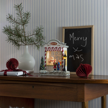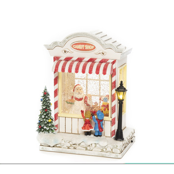 Haal de kerstsfeer in huis met de kerstdecoratie van GAMMA. Vervolledig je kerstdorp met deze watergevulde snoepwinkel met 2 warmwite LEDlampjes. De snoepwinkel werkt op 3 C batterijen en heeft een afmeting van 16,5 cm breedte x 22,5 cm hoogte. Daarnaast is de decoratie voorzien van een 5uren timer waardoor het frame zich na 5uur automatisch uitschakelt.