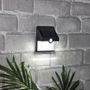 De solar buitenlamp Gio met bewegingssensor is perfect voor het verlichten van jouw buitenruimte. Het functionele uiterlijke van wandlamp Gio leent zich goed voor bijvoorbeeld plaatsing bij de voordeur, schuur, of langs een schutting. De solar lamp laadt overdag door zonlicht op en gaat op basis van beweging aan zodra de zon onder is. De lamp heeft een kleurtempratuur van 6500 kelvin wat zorgt voor koel wit licht. Dankzij de IP44 beschermingsgraad is de lamp spatwaterdicht.