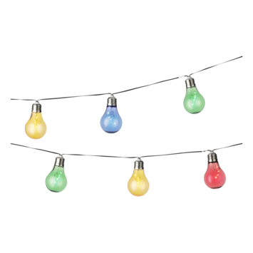 Deze decoratieve verlichting aan een snoer is een echte eyecatcher. De geïntegreerde LED lampjes hebben een originele vorm. De lampjes zijn verspreid over 4,5 meter. Het aanloopsnoer bedraagt 5 meter en voorziet om de 50 cm de snoer van een sfeervol lampje. Met de bijgeleverde batterijen heb je in een mum van tijd jouw terras of balkon omgetoverd. Batterijen leeg? Niet getreurd deze lampjes zijn ook voorzien van een solar paneel, zo zorgt de zon ervoor dat jij niet zonder licht komt te zitten.