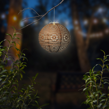 Deze Solar hanglamp met warm wit licht heeft een zachte gloed en geeft door het patroon een betoverende sfeer op je terras of balkon. De lamp werkt volledig op solar energie, waardoor hij milieuvriendelijk is en gemakkelijk te gebruiken zonder gedoe met bedrading. Het warm wit LED-licht zorgt tot zes uur lang voor een rustgevende sfeer na het opladen.
