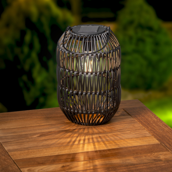 Tussen de bloempotten van het terrras of op je tuintafel, deze lantaarn is de eyecatcher en zal direct voor sfeer zorgen. De lantaarn is voorzien van een solar paneel dat gedurende de dag zal opladen, zodra het donkerder wordt zal de lantaarn tot 6 uur branden. De LED lantaarn geeft warm wit licht en is 24,5 cm hoog.