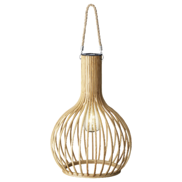 Deze lantaarn is dé eyecatcher voor op jouw buitentafel of hang hem in de boom en hij zal direct voor sfeer zorgen. De lantaarn is gemaakt van bamboe. De bamboe lantaarn is voorzien van een solar paneel dat gedurende de dag zal opladen, zodra het donkerder wordt zal de lantaarn tot 6 uur branden. De LED lantaarn is voorzien van warm wit licht