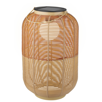 De Lumineo solar tafellamp geeft warm wit licht. Deze lamp is een sfeervolle aanwinst aan je tuin, balkon of terras. Het gerecycleerde wicker materiaal in warme bruintinten zorgt voor een natuurlijke en stijlvolle uitstraling, terwijl solar energie zorgt voor eenvoudig gebruik zonder gedoe met kabels. De lamp geeft warm wit licht dat tot 6 uur lang brandt en zo de hele avond een uitnodigende sfeer creërt.