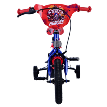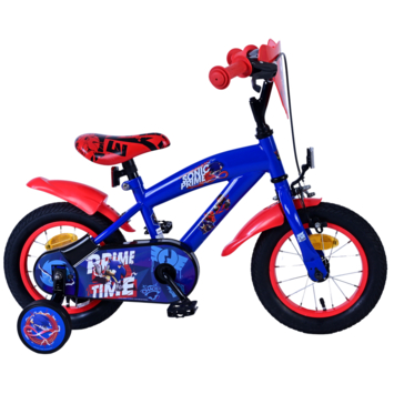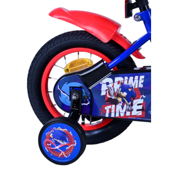 De Sonic Prime 12 inch kinderfiets in blauw en rood maakt leren fietsen extra leuk! Veiligheid is gegarandeerd met een handrem, terugtraprem en een gesloten kettingkast. De afneembare zijwieltjes helpen je kind snel leren fietsen, en de reflectoren zorgen voor zichtbaarheid in het verkeer.