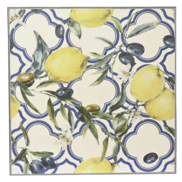 Wat direct opvalt is de combinatie van kleur en karakter van deze buitentafel. De Sorrento bistrotafel combineert een vrolijk limoenmozaïek met een strak blauw ijzeren frame. Het tafelblad heeft een dikte van 2 cm en de totale hoogte is 76 cm, met 56 cm ruimte onder het blad voor comfortabele beenruimte. Deze vierkante tafel van 58 x 58 cm past makkelijk op kleinere terrassen of balkons. Ideaal voor een lunch in de zon of een koffiepauze buiten. Zet 'm neer met de bijpassende Sorrento stoelen en je creëert een levendige hoek die opvalt en uitnodigt om even te blijven zitten.