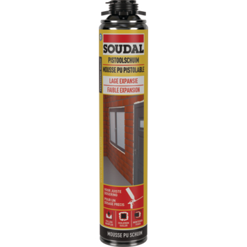Voor het opvullen, monteren en isoleren, gebruik je dit Soudal PU-schuim 750 ml met lage expansie. Dankzij de handige schroefdraad op dit product, koppel je hem eenvoudig op een PU-schuimpistool van Soudal.